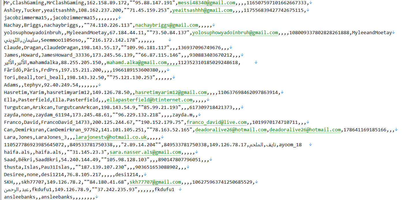 HEADERS : GoogleId,Firstname.lastname,remote IP , Real IP Address,Email ID